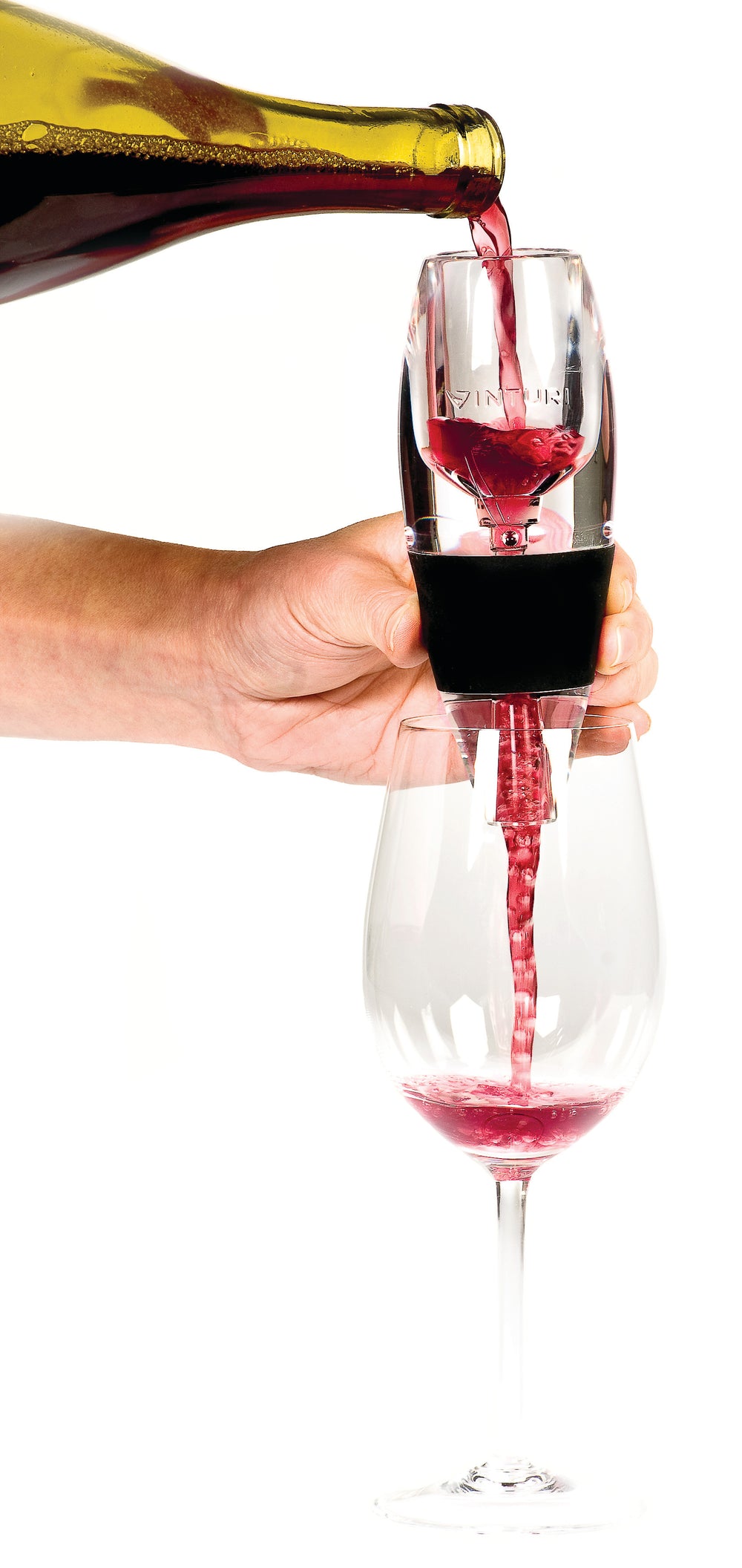 Vinturi’s patented design draws in and mixes the proper amount of air for the right amount of time; allowing your wine to breathe instantly. When wine is poured in the Vinturi, its internal design creates an increase in the wine’s velocity and a decrease in its pressure.