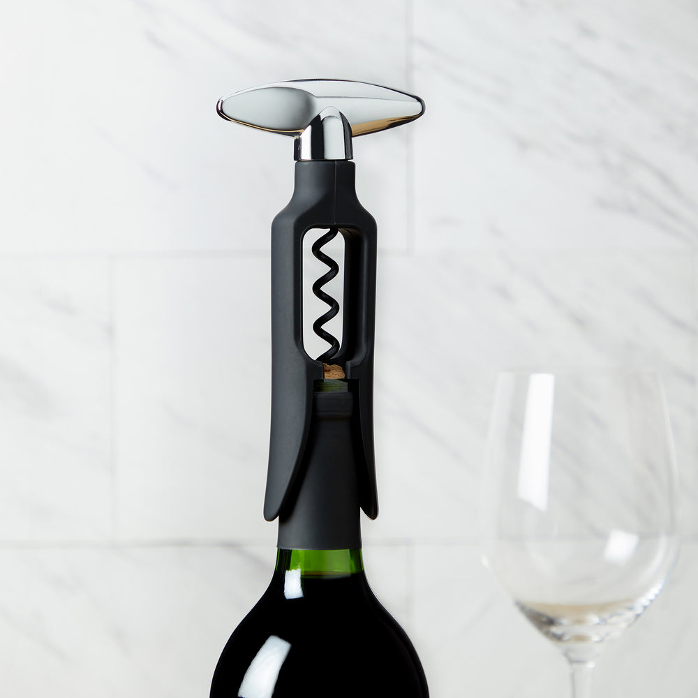 The Twister Easy-Turn Corkscrew’s non-stick worm finds center as it spins down through the self-bracing frame of the corkscrew and into the bottleneck. Just keep turning the sleek chrome handle and watch the cork slide up and out of the bottle effortlessly.