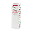 Spread holiday cheer with a splash of polka dot fun! This festive "Feliz Navidad" wine bag brings a playful holiday vibe, with red and green polka dots, ribbon handles, and a matching gift tag.