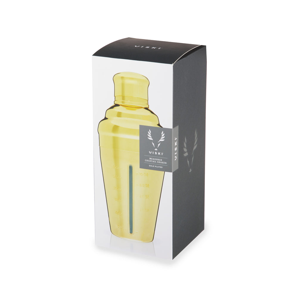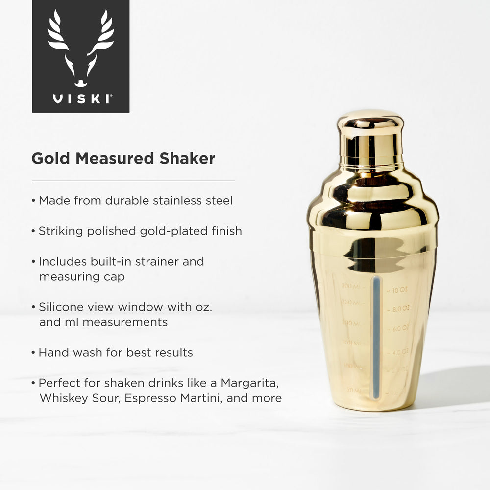 Take the guesswork out of bartending with our Gold Measured Cocktail Shaker. Marked with both U.S. standard and metric measurements, it includes a clear window so you can peek at how much you’re pouring and perfect your mixed drinks.