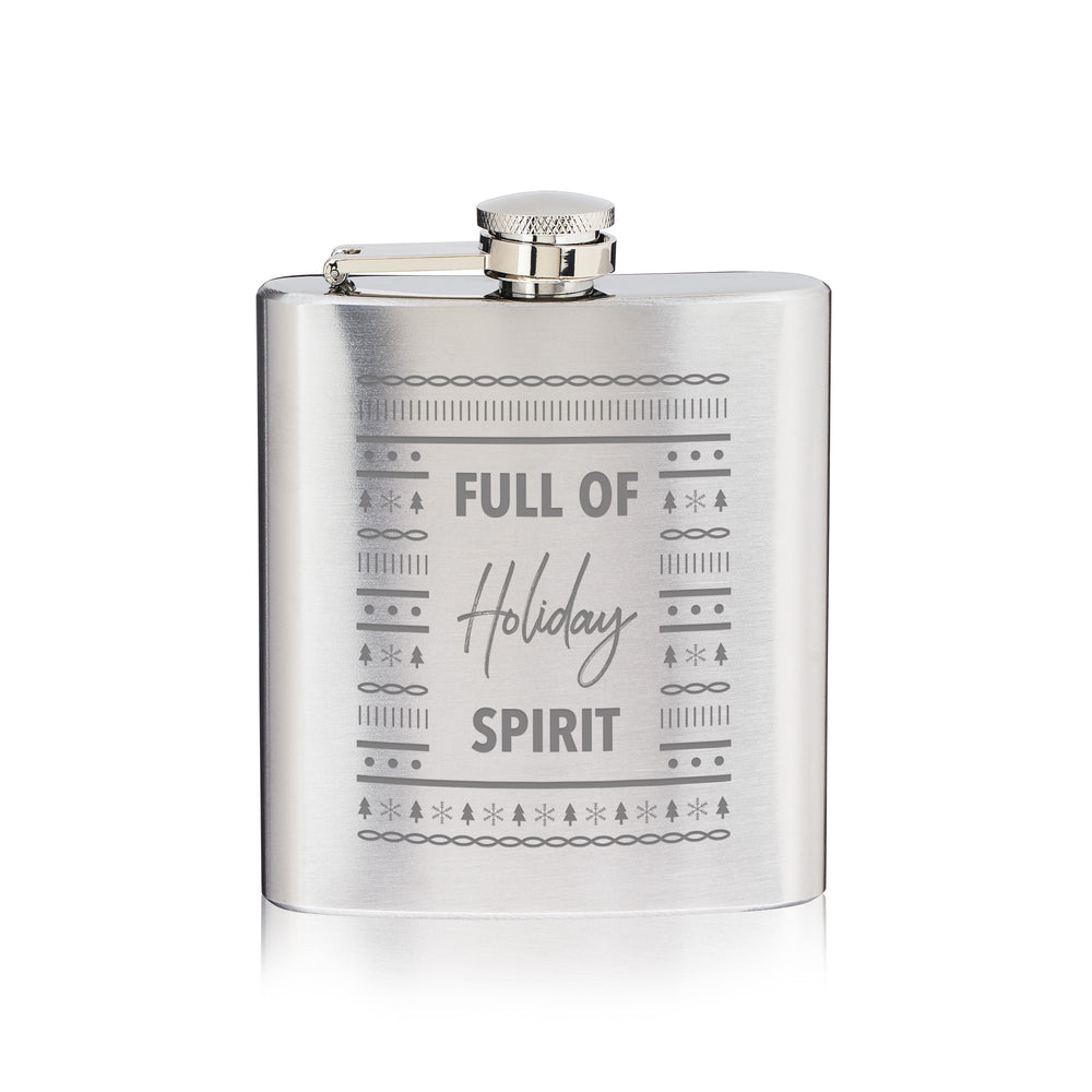 Indulge in the joyous festivities with the Full of Holiday Spirit Flask. Crafted from high-quality stainless steel, this flask is a perfect companion for those merry moments. With a generous 6 oz capacity, it ensures you never run dry, allowing you to savor every sip of your favorite spirits.