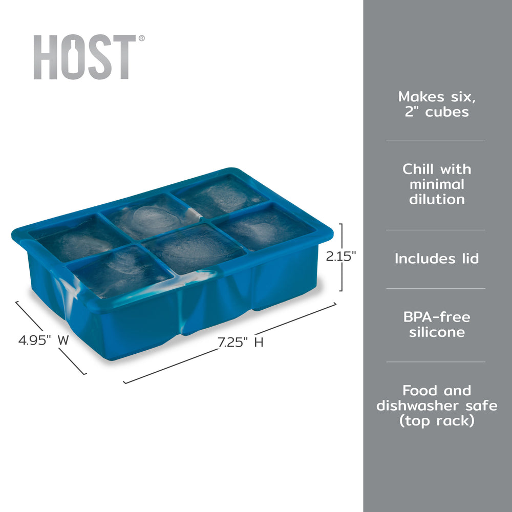 This food-safe silicone tray creates six large 2-inch cubes that melt slower, ensuring your whiskey, cocktails, or iced coffee stays cold and flavorful. The included lid allows for easy stacking, prevents spills, and keeps food odors out. Durable, flexible, and dishwasher safe, this easy-release silicone tray combines practicality and style for your kitchen or home bar setup.