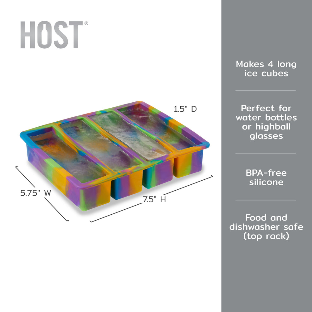 Designed to create four long, narrow ice cubes, this tray is perfect for slipping ice into water bottles, highball glasses, or narrow-neck containers. Made from food-safe silicone, it features a flexible, durable design that makes popping out evenly sized cubes effortless. Dishwasher safe for quick cleaning, this tray is as convenient as it is functional.