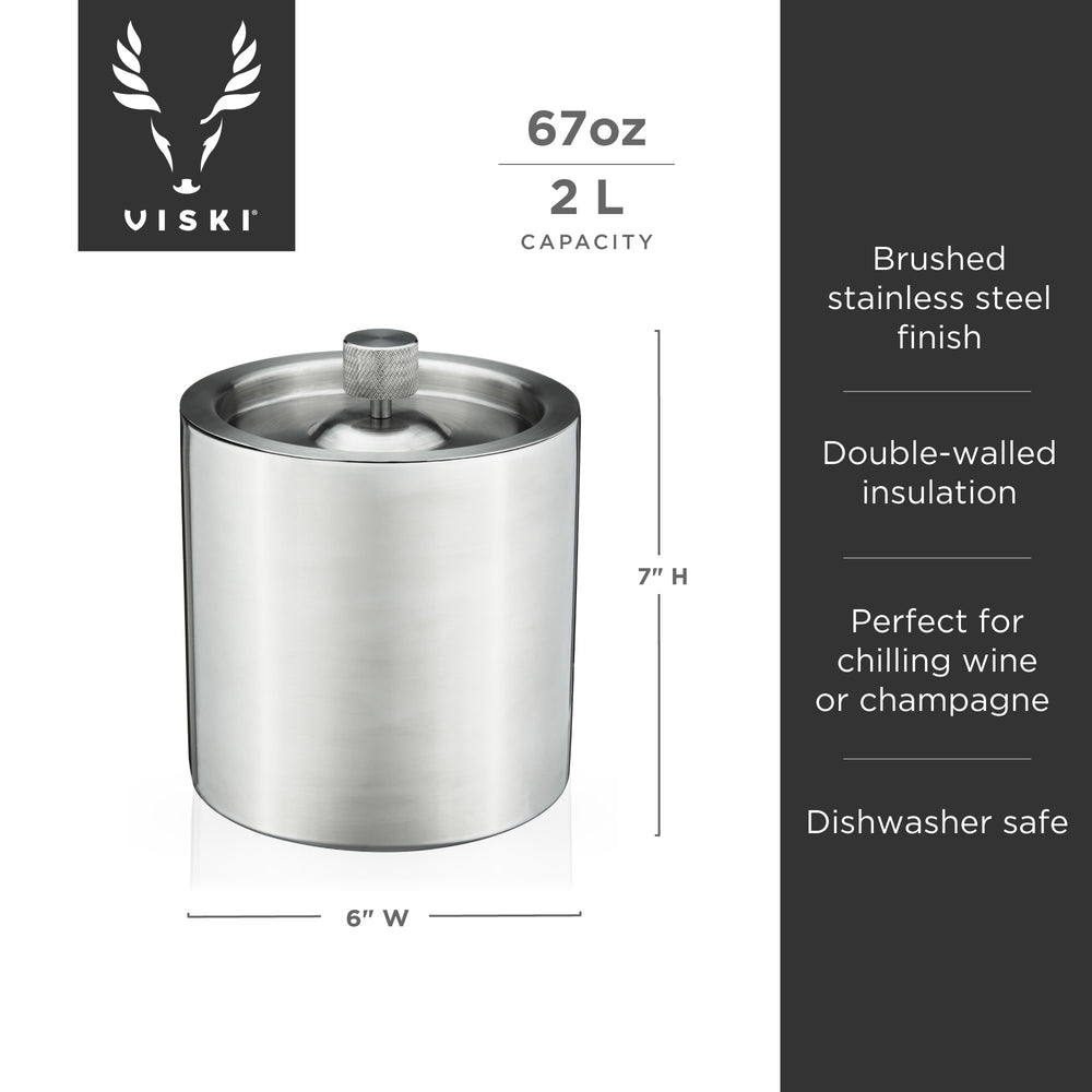 Fresh ice is essential for good cocktails. Keep your ice cold and clean in this stylish double-walled metal ice bucket with a lid. The insulated design is also perfect for keeping white wine or champagne chilled, while the brushed stainless steel finish makes this bottle bucket sleek and modern.