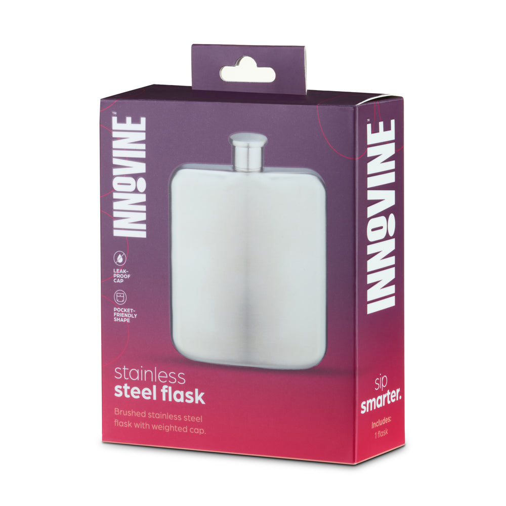 This sleek brushed stainless steel flask combines style and practicality, making it a perfect companion for on-the-go enjoyment. It holds 6 oz. (177ml) of your favorite spirits and features a leak-proof, weighted screw-on cap for secure storage. The compact design fits comfortably in pockets or bags.