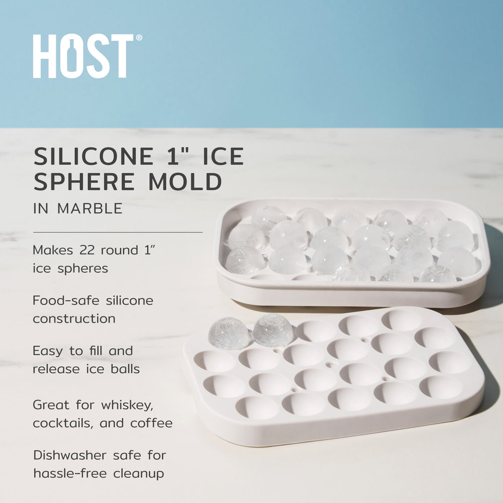 This 22-sphere silicone ice mold creates perfectly round 1” ice balls, ideal for chilling whiskey, cocktails, coffee, lemonade, and infusing fruit and juice flavors. Made from high-quality, food-safe silicone in a marble design, it’s durable, flexible, and versatile. The mold is easy to fill, releases ice effortlessly, and is dishwasher safe for quick and convenient cleaning.