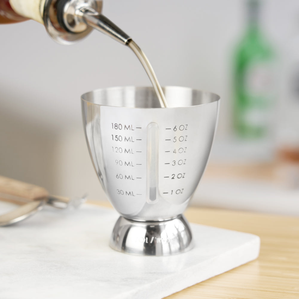 - Includes: 6-oz measured pourer & 1-oz base, standard & metric notations