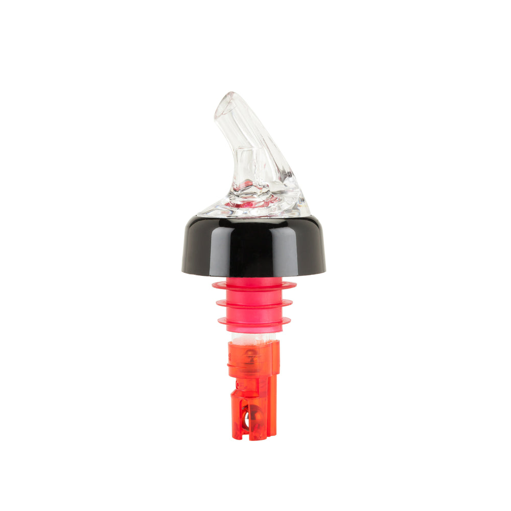 - Heavy-duty plastic, portion- control pourer with metal regulator ball.