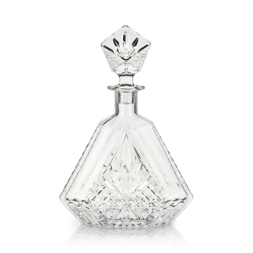 Give your fine liquor a decanter to match. The gem-like angles and deep grooves in this solid crystal decanter refract light through your liquor, making it beautiful as well as practical.