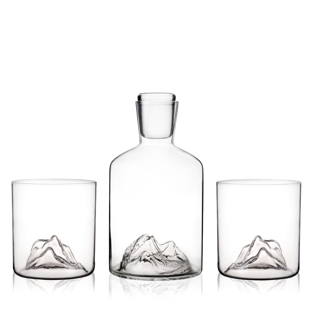 Mountain 3-Piece Crystal Liquor Decanter and Tumbler Set