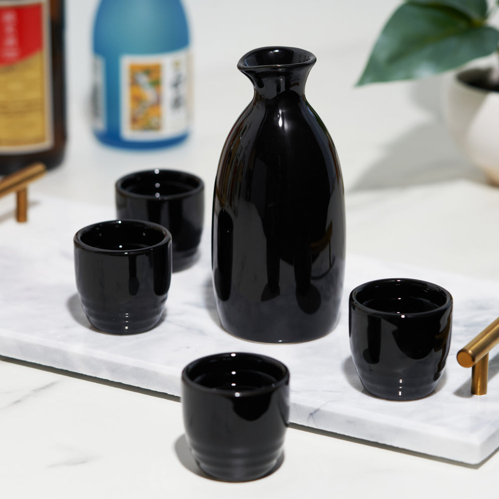 Glossy and minimal, these pieces put a modern twist on the traditional sake set. The flask and four drinking cups are crafted from glazed porcelain, ensuring that with proper care, you'll enjoy many years of refined drinking.