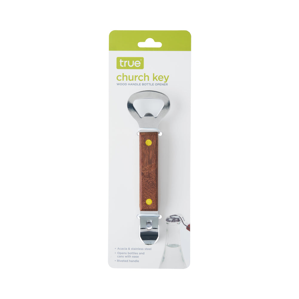 Open bottles and cans with one easy tool. With a riveted wood handle and sturdy stainless steel, this classic design is a staple for home kitchen.