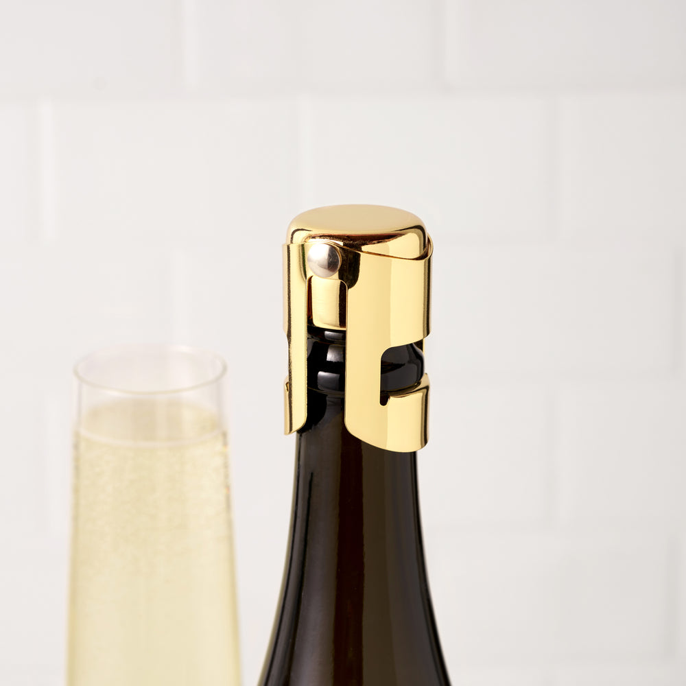 Keep the celebration going longer with champagne stoppers for bottles. This sturdy wine bottle stopper seals the bottle completely and clamps shut to preserve effervescence—never drink flat champagne again.