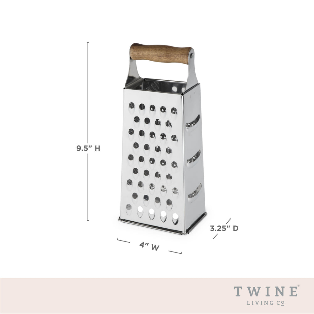 With four grating patterns to choose from, this stainless steel grater guarantees perfect snacks and appetizers. A warm, natural acacia wood handle makes it handsome enough to put on display.