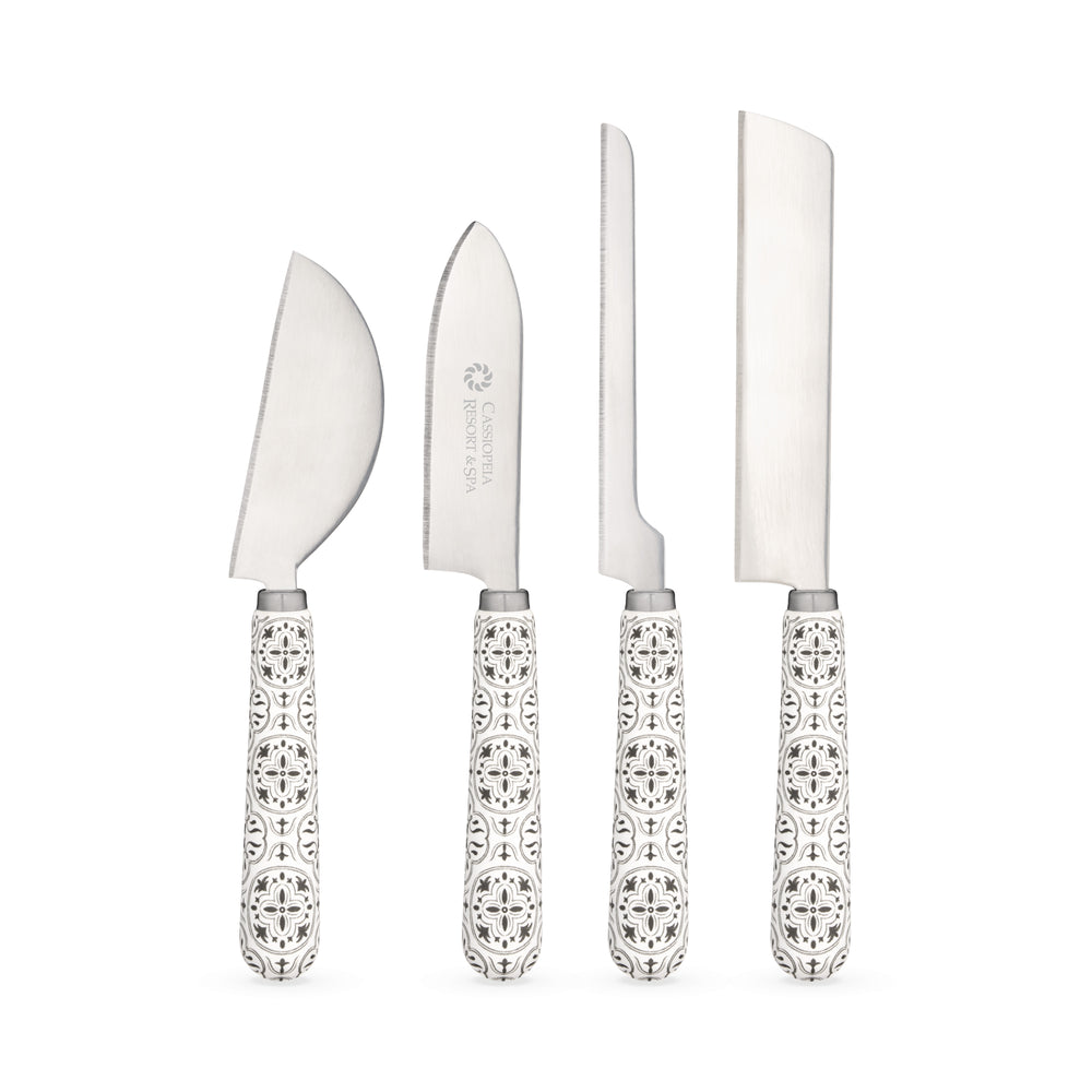 These ceramic tile patterned handles are satisfying to hold and use, while looking absolutely gorgeous on a cheese plate or cutting board. Guests can easily help themselves to their favorite cheeses with this elegant set of cheese knives.