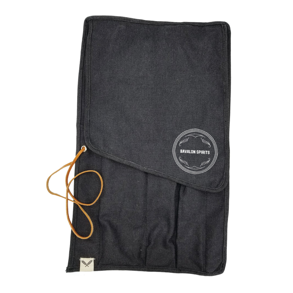 Nestled in this sturdy canvas roll-up are the three grilling amigos: your spatula, tongs, and fork. All three sport handsomely carved wood handles, and the spatula and fork end in convenient bottle openers.