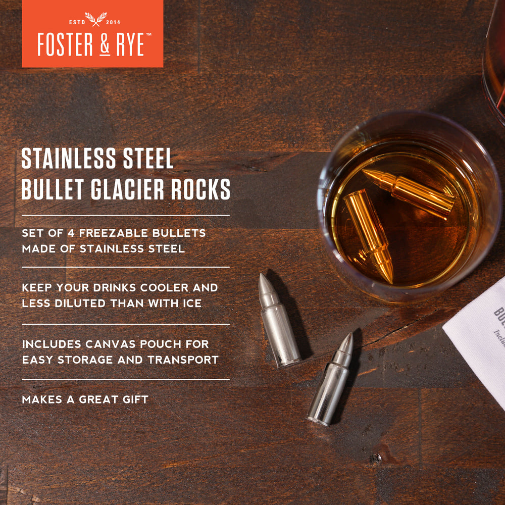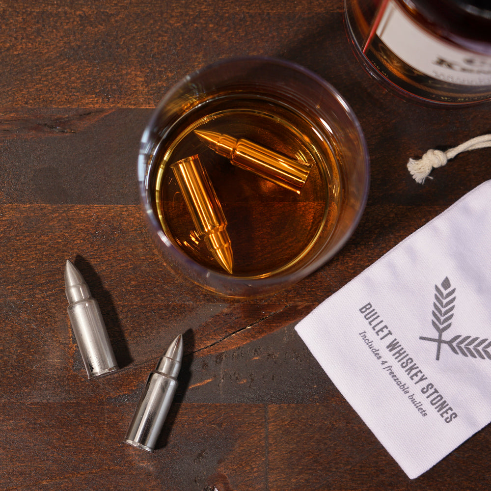 When it comes to chilled libations, these stainless steel bullet whiskey rocks are the sharpest shooters in the industry, keeping liquor cooler and less diluted than traditional ice accessories. Pour spirits on the rocks for a stone-cold killer taste.
