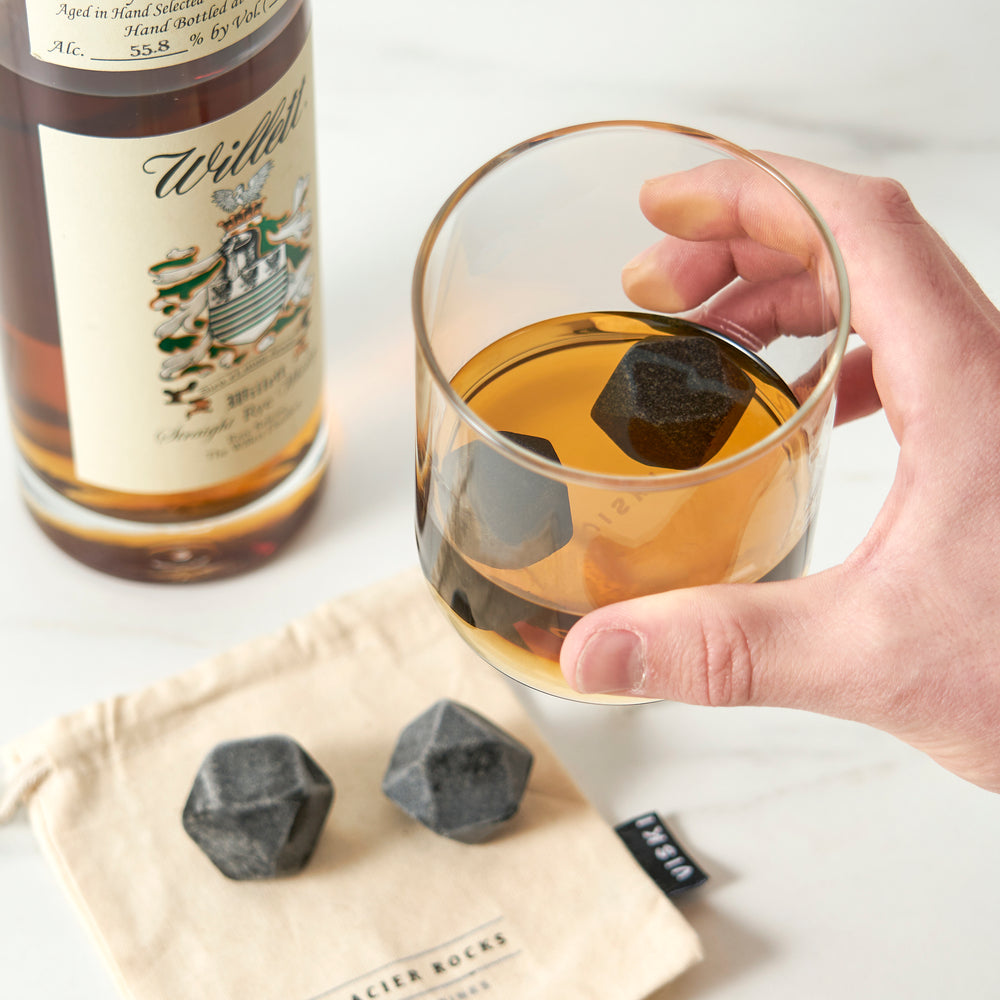 Pour neat drinks directly over our Hexagon Glacier Rocks to keep libations ice cold and uncut. Polished black basalt brings an unfettered edge to the table, letting you savor full-flavor spirits down to the bottom of the glass.