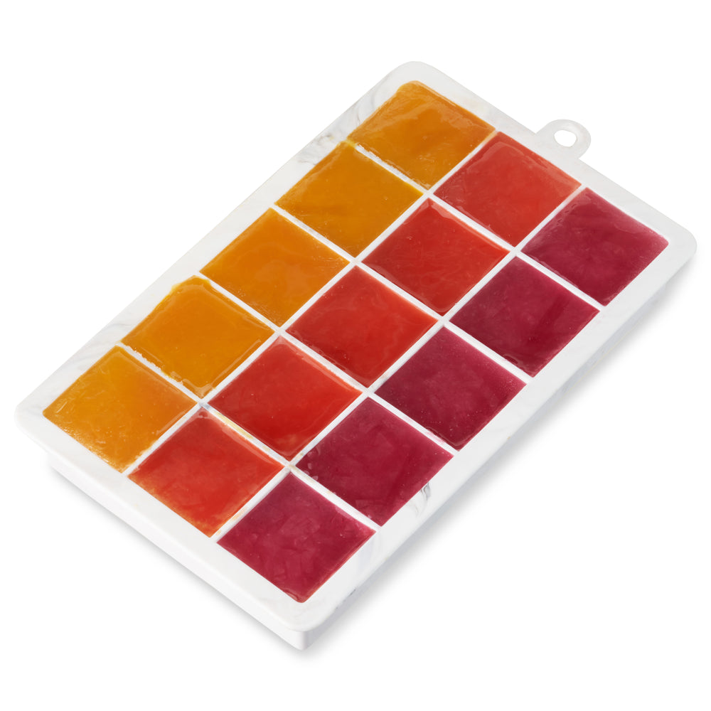 No one wants watered-down cocktails. This durable Marbled Ice Cube Tray provides the solution to dilution as it pops out fifteen large cubes that melt slowly to keep whiskey, cocktails, and other drinks cold and refreshing. A convenient lid creates easy stacking and spill-free use.