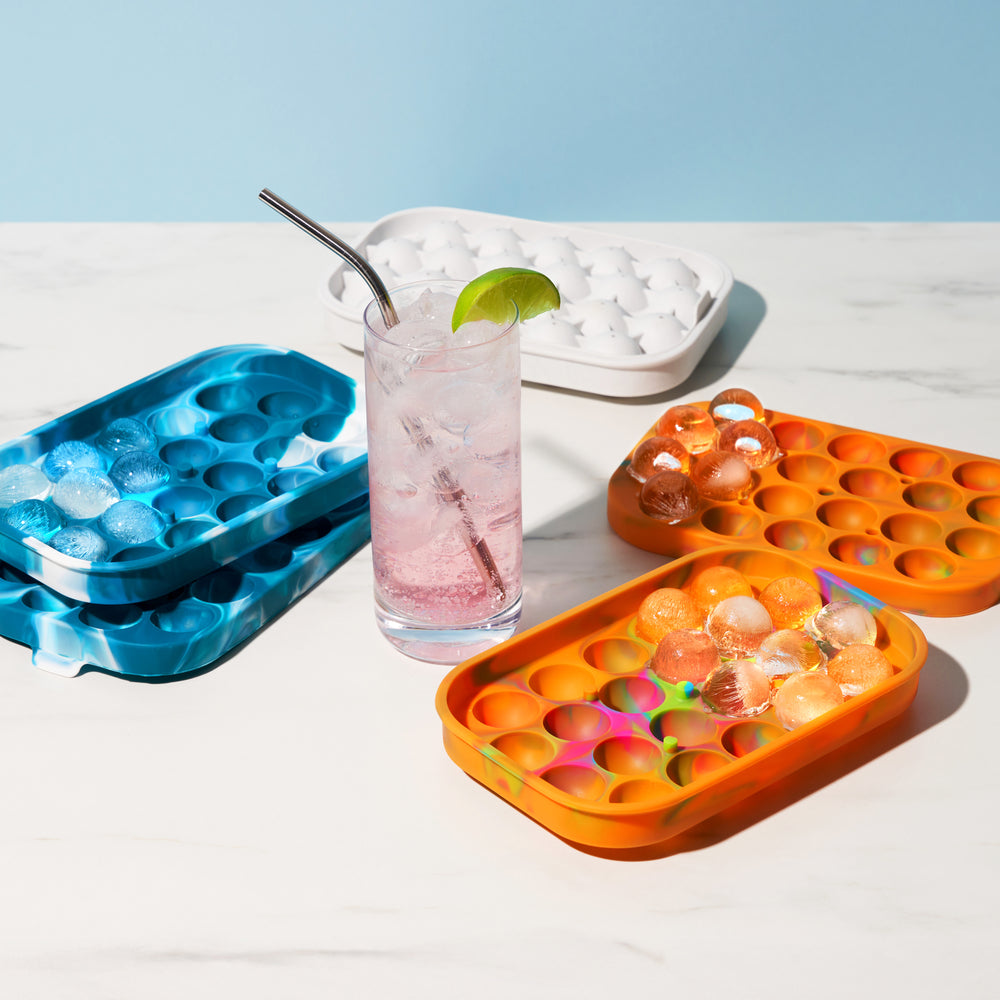 This 22-sphere silicone ice mold creates perfectly round 1” ice balls, ideal for chilling whiskey, cocktails, coffee, lemonade, and infusing fruit and juice flavors. Made from high-quality, food-safe silicone in a marble design, it’s durable, flexible, and versatile. The mold is easy to fill, releases ice effortlessly, and is dishwasher safe for quick and convenient cleaning.