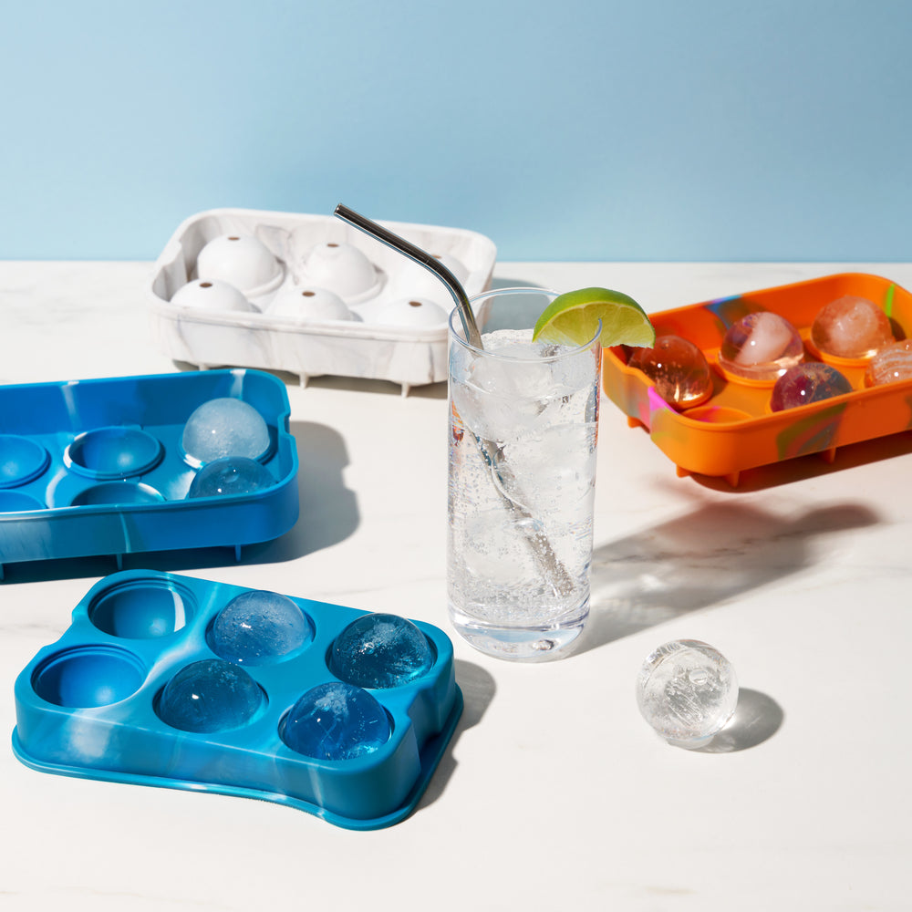 This silicone ice mold makes six perfectly round 2” ice spheres that melt slowly, keeping your drinks chilled longer with less dilution. Ideal for whiskey, cocktails, iced tea, or infusing fruit and herbs, it’s a versatile addition to enhance your beverage experience. Made from food-safe silicone with a colorful marble finish, the flexible mold allows for easy release and is dishwasher safe for quick cleaning.