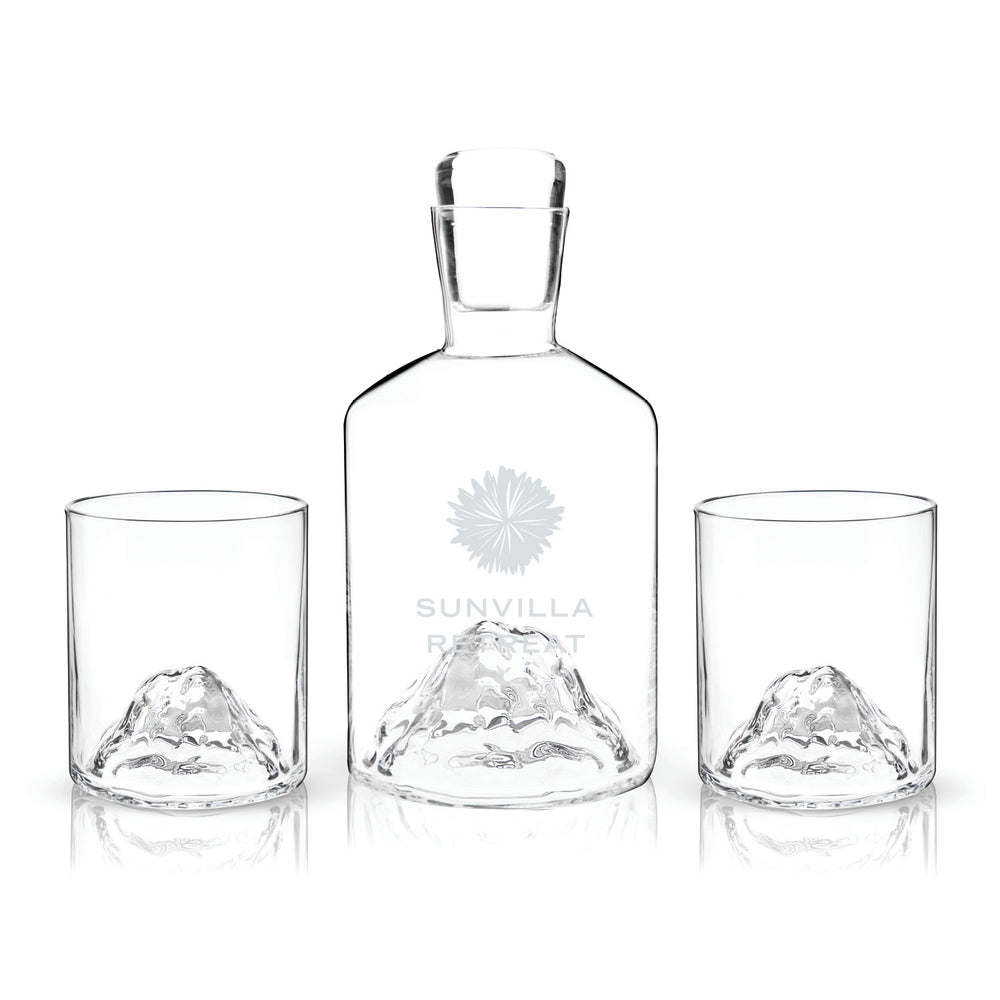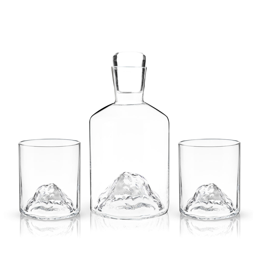 Mountain 3-Piece Crystal Liquor Decanter and Tumbler Set