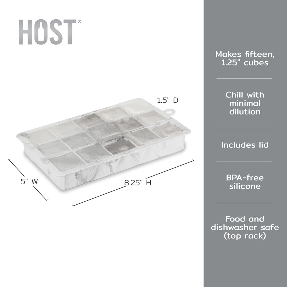 No one wants watered-down cocktails. This durable Marbled Ice Cube Tray provides the solution to dilution as it pops out fifteen large cubes that melt slowly to keep whiskey, cocktails, and other drinks cold and refreshing. A convenient lid creates easy stacking and spill-free use.