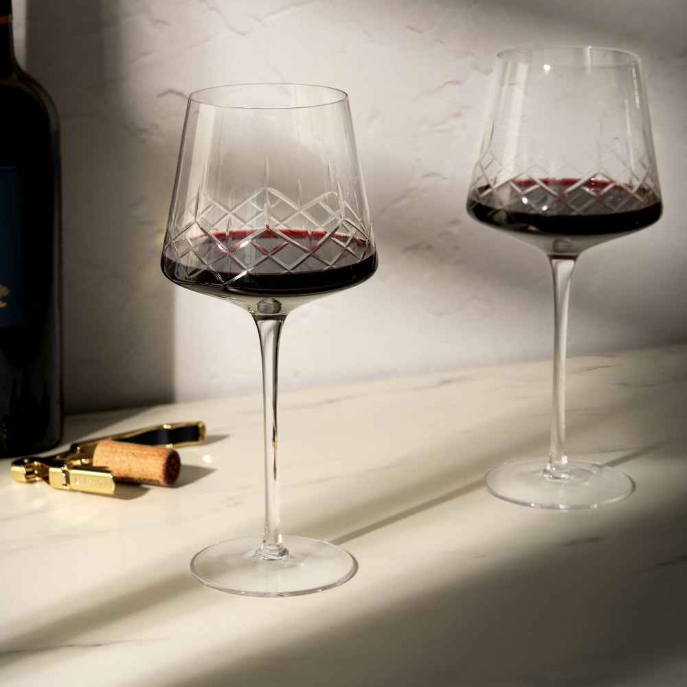 An extension to the bestselling Admiral Collection, these lead-free crystal Burgundy wine glasses are designed to enhance the flavors and aromas of your favorite red wines. The classic cut crystal linework pattern combines timeless detailing with a modern silhouette, while the spacious bowl and 18 oz capacity allows wine to breathe for the ultimate tasting experience.