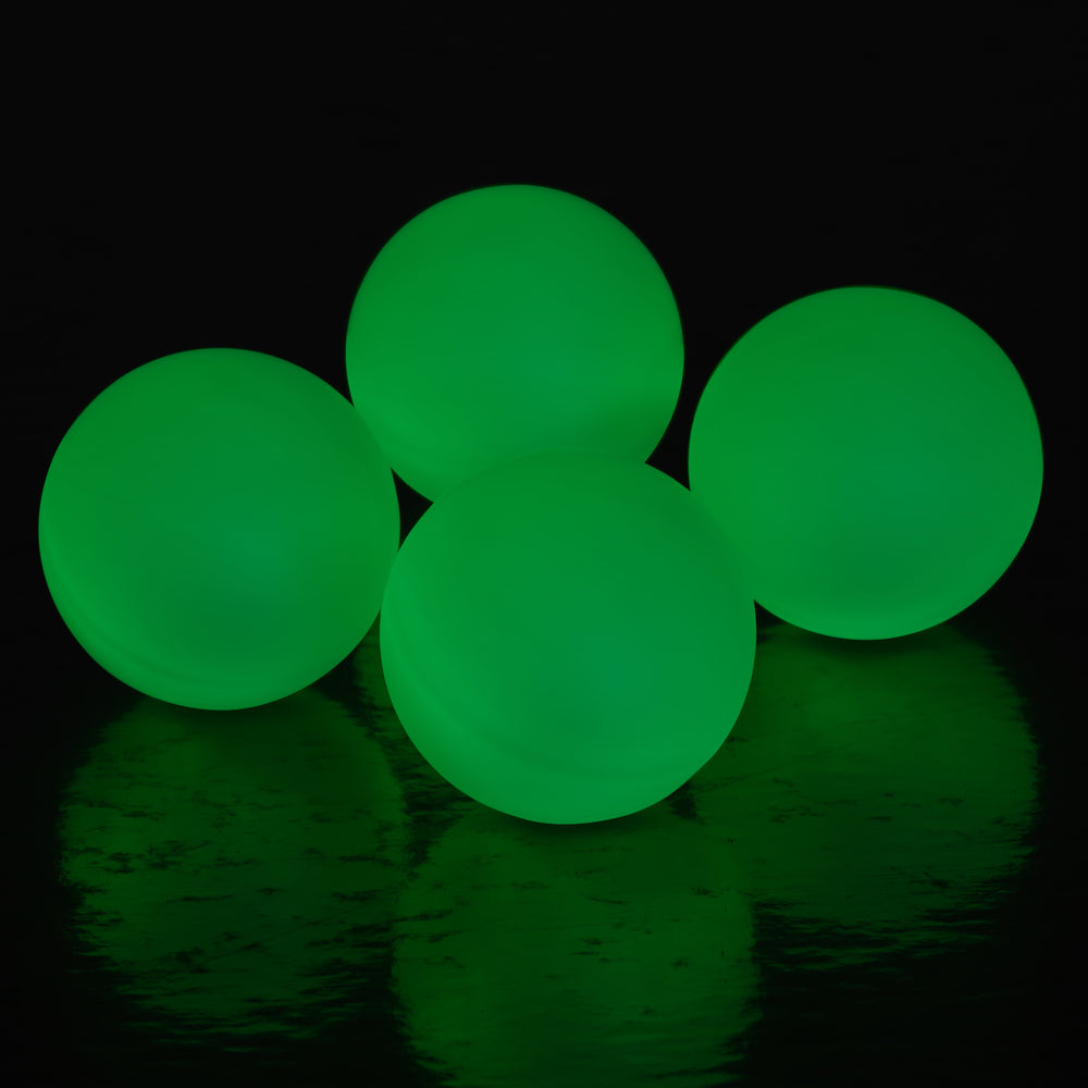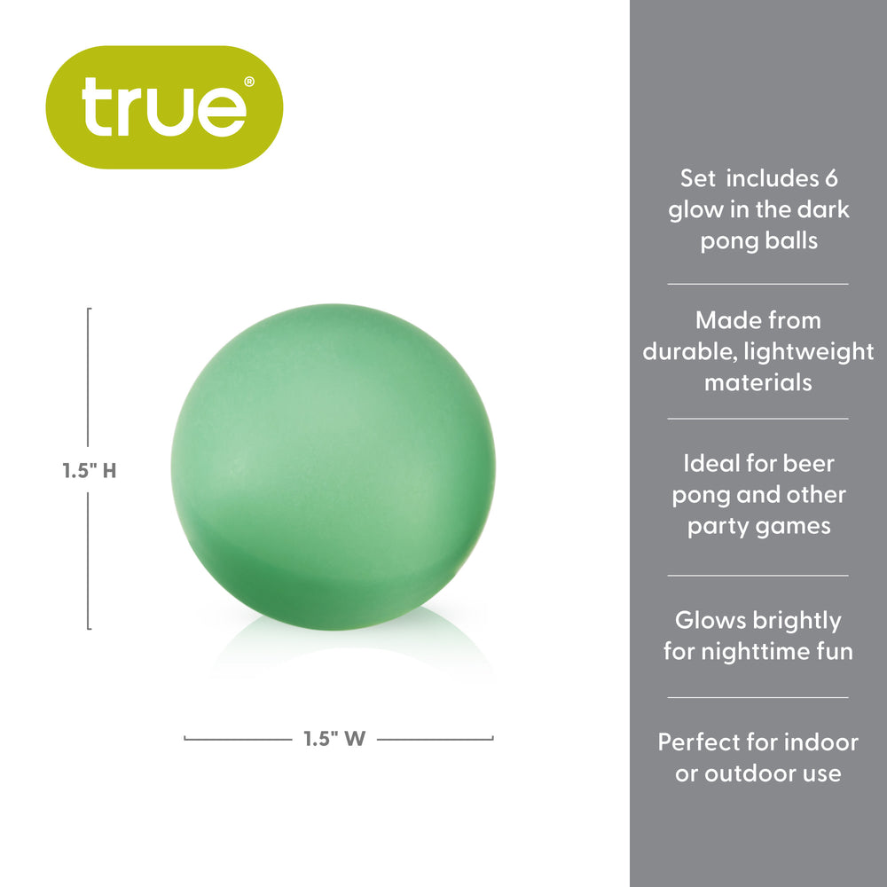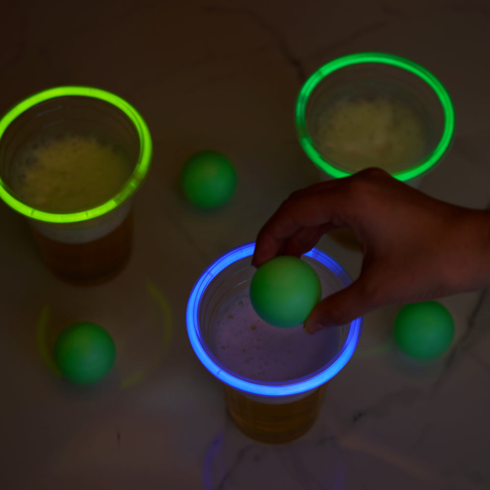 Take your party games to the next level with this set of 6 glow in the dark pong balls. Designed to bring the fun even after the lights go out, these balls glow brightly to keep the game going all night long. Perfect for beer pong and other party games, these balls are made with durable materials for reliable use. Great for indoor or outdoor settings, these glow-in-the-dark pong balls are a must-have for any game night.