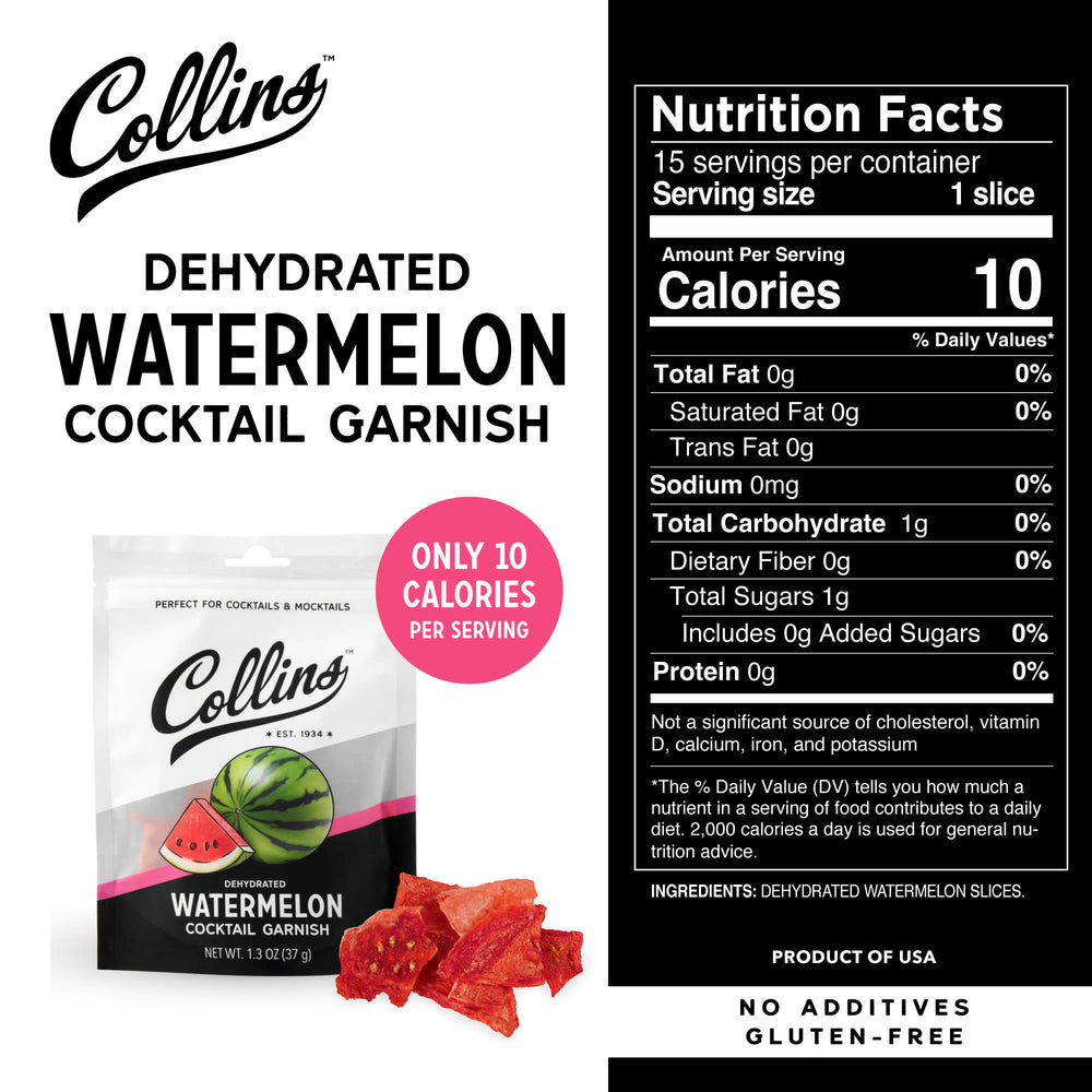 Collins Dehydrated Watermelon Cocktail Garnishes add a refreshing, summery touch to your favorite drinks.