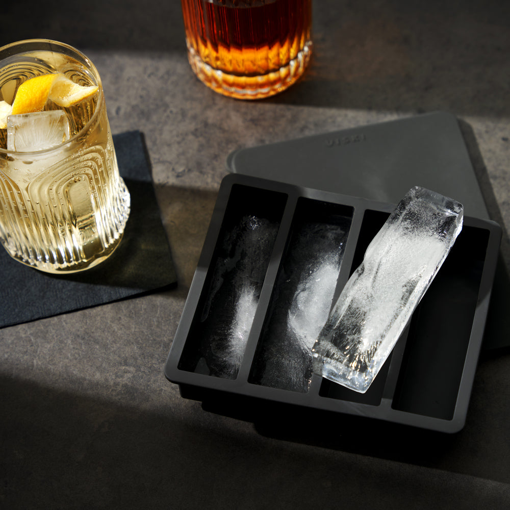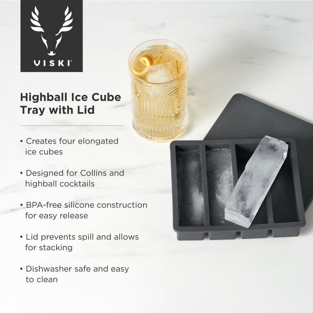 These ice cube trays are the ultimate accessory for highball cocktails. Made of flexible BPA-free silicone, each tray produces four elongated ice cubes designed to fit perfectly in collins, rickey, or highball glasses. The fitted lid ensures stackable storage, preserves freshness, and prevents spills, while the long ice rectangles melt slowly to keep drinks chilled without diluting their flavor.
