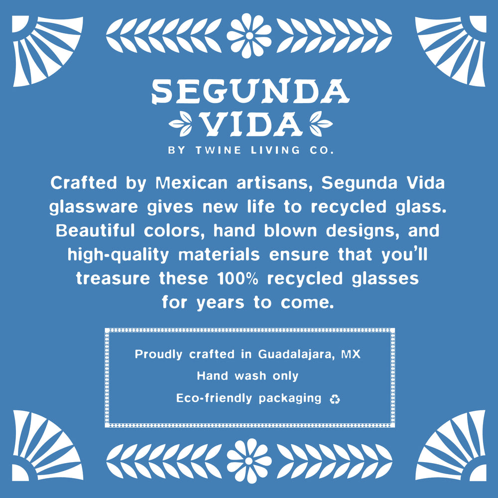 Bring the tranquil beauty of the coast to your table with these Playa Bonita cocktail tumblers. Handblown by Mexican artisans from recycled glass, these stunning pieces feature a serene sea blue that transitions to a sandy hue, evoking the colors of a peaceful beach.