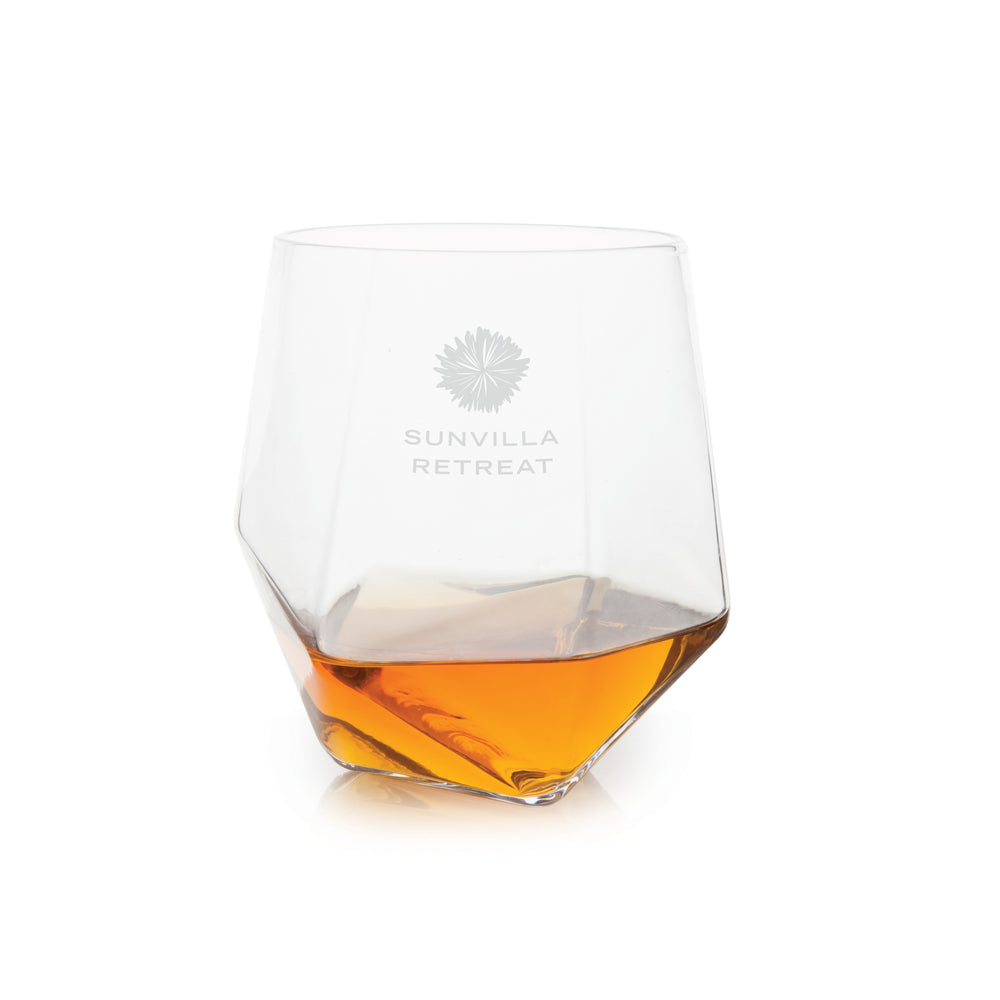 Splitting off from a triangular base, nine angled sides make our multi-faceted crystal tumbler uncommonly captivating. With each face sending prismatic light in splintered rays through your liquor, the glass rounds out smoothly as it reaches the rim.