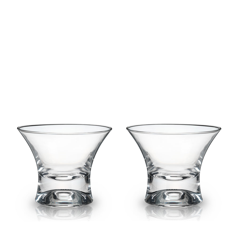 This crystal Manhattan barware set is perfect for a Manhattan, martini, or any drink served up. The stemless design, heavy base, and mid-century silhouette bring contemporary elegance to any cocktail.