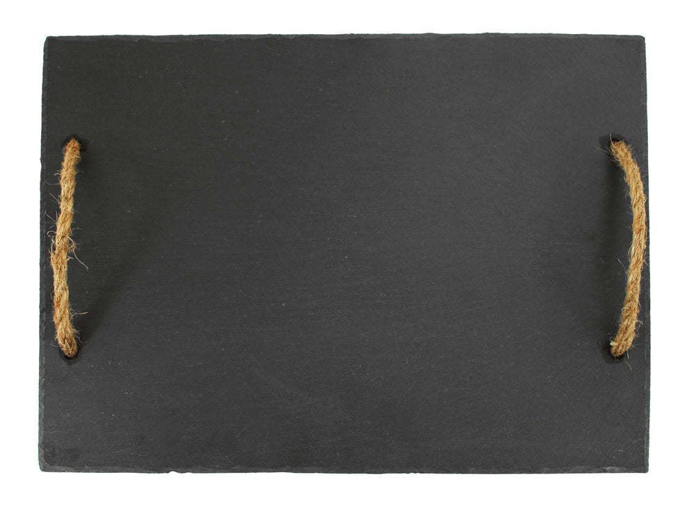 Natural food-safe slate sets off your selection of cheeses, charcuterie, and tapas, while soapstone chalk and a generous size allows you to clearly label your appetizers. Upgrade your hors d'oeuvres presentation with this handled slate cheese board set.