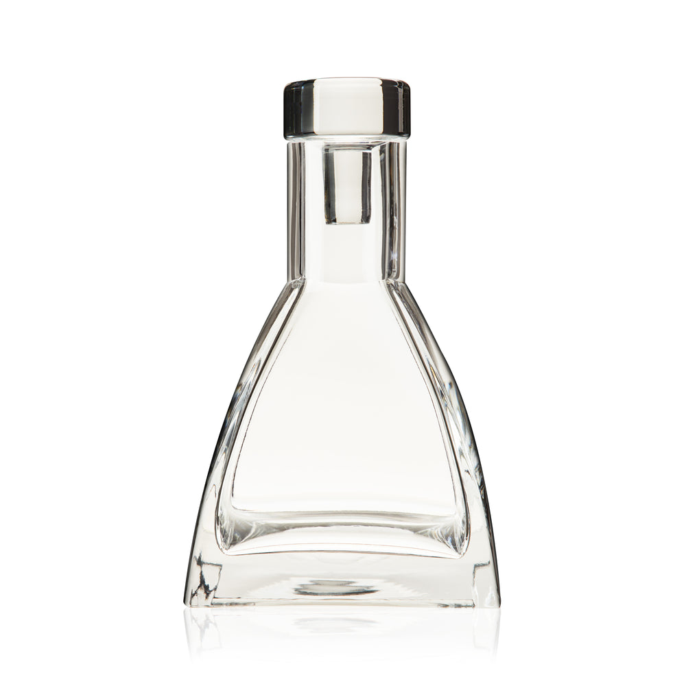 Stunning curves, a heavy base, and a triangular silhouette make this liquor decanter stand out. Hand-blown from crystal-clear, lead-free glass, this decanter is a timeless, elegant way to store and show off your favorite spirits.