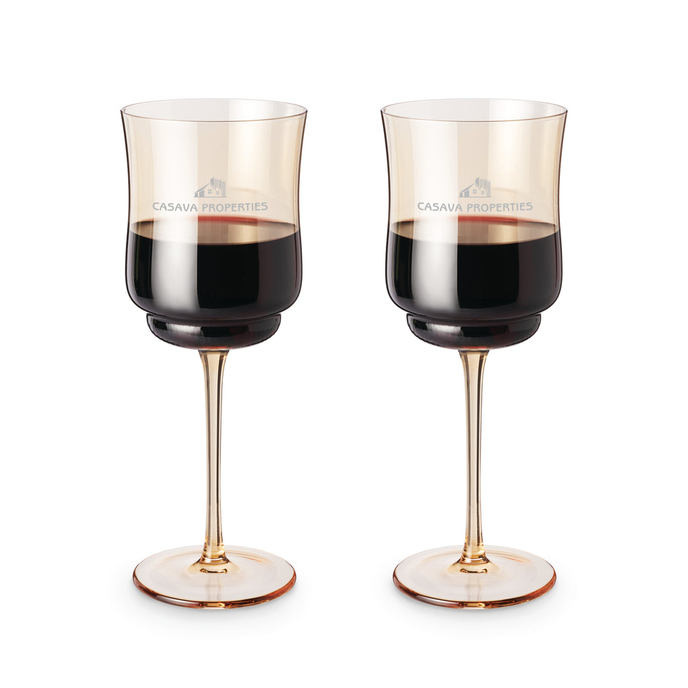 Tulip Stemmed Wine Glasses in Amber, Set of 2