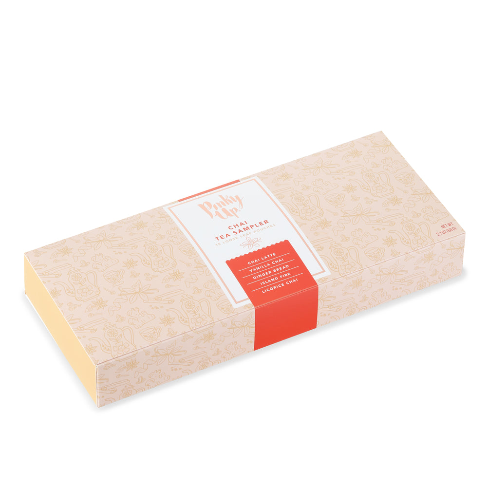Calling all chai lovers! Try all 5 of our chai-inspired teas with this sampler set. It includes 3 single serving pouches of each loose leaf brew so you can experience the sweet and spicy warmth of chai. Our Island Fire blend is intended to be served as iced tea so you can enjoy these flavors even on a hot day, while the others highlight different spices and are delicious served hot with milk.