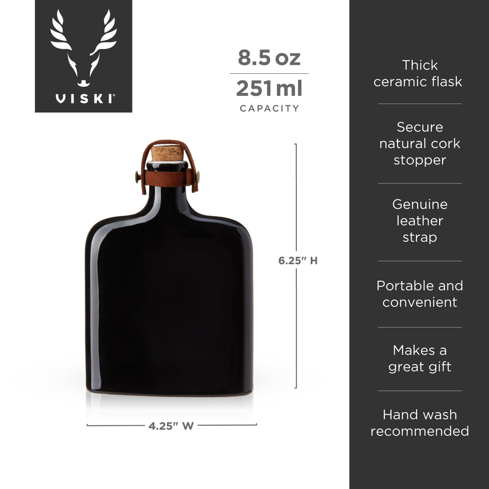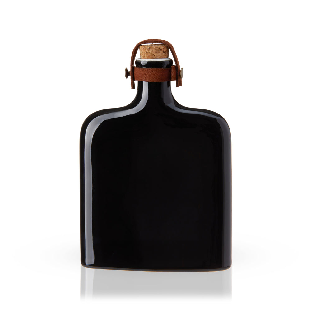 Crafted from ceramic with a striking black glaze, this flask is a unique display piece for your bar. It comes with a natural cork and genuine leather strap.