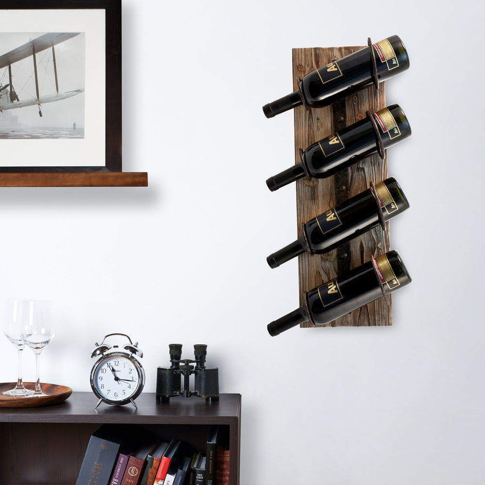 Wall Mounted Metal & Wood 4-Bottle Wine Rack