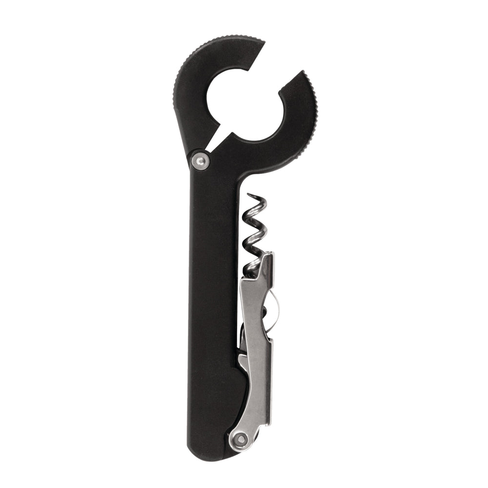 Experience a spring-loaded lever corkscrew with a twist! The Wrench Corkscrew & Foil Cutter boasts a round foil cutter at its end, making it easy to remove foil and open the bottle all with one simple tool.