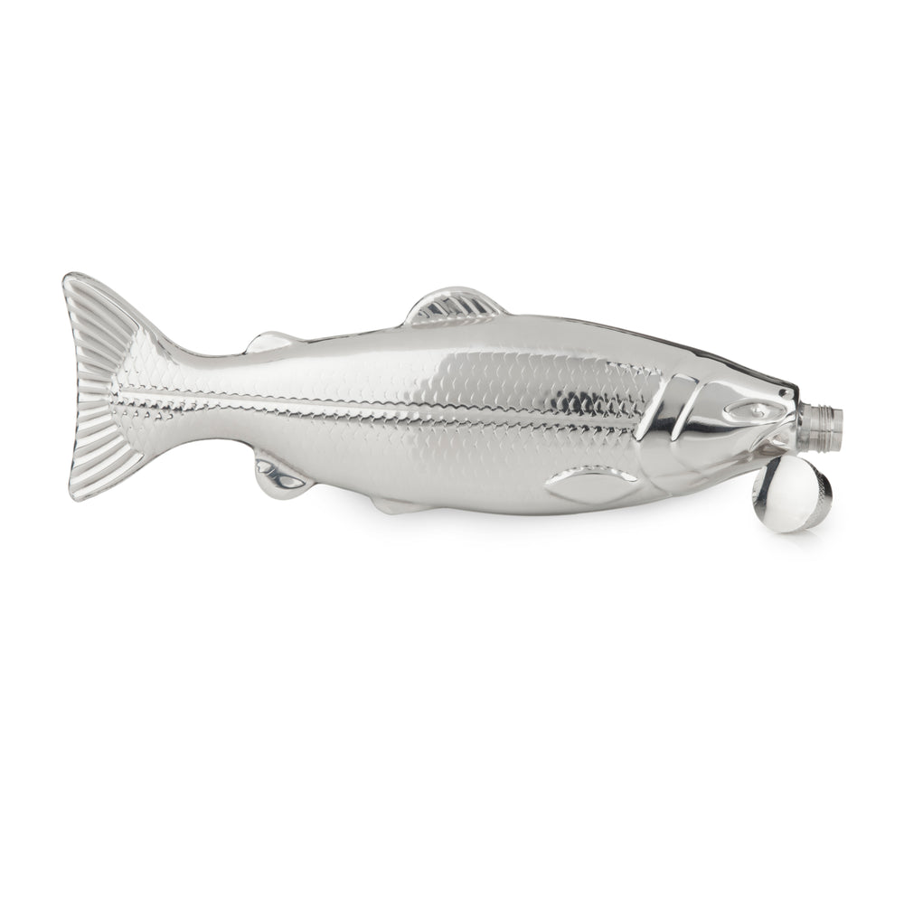 Cast in shimmering stainless steel, our true-to-life trout flask is perfect for anyone who can drink like a fish. Tucking covertly into a backpack or fishing vest pocket, it holds four ounces of any elixir. Really, what better way to get sloshed?