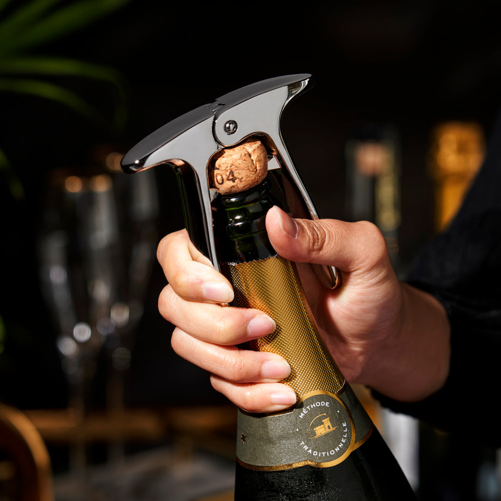 Pop the cork on your best bubbly with a powerful silver-finished champagne puller. Designed with a dual-lever grip to maximize your strength and control the cork, it's the paramount party accessory for any occasion.