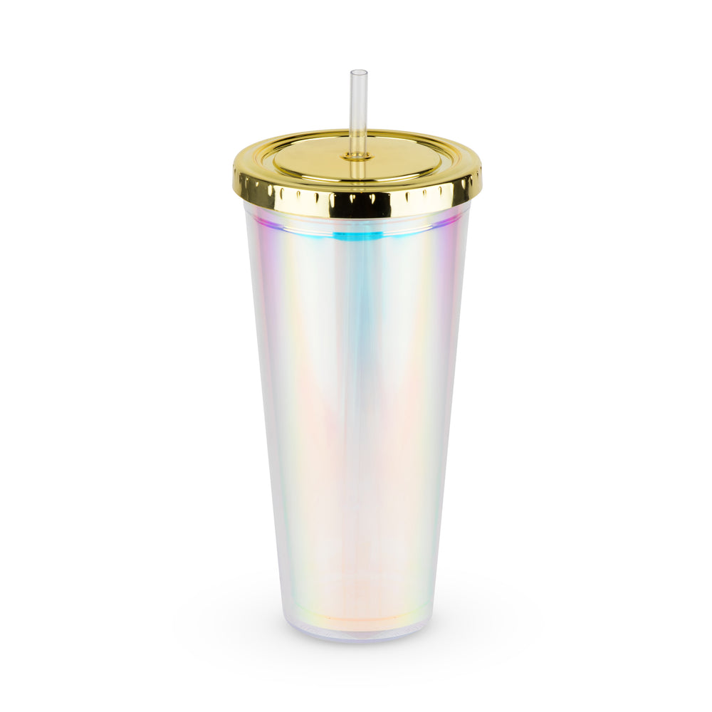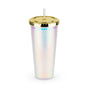 Calling all mermaid babes, unicorns for life, and fairy princesses! This tumbler has you written all over it. All-over iridescence lends a shimmering beauty, while the screw-on lid and straw make for smooth sipping.