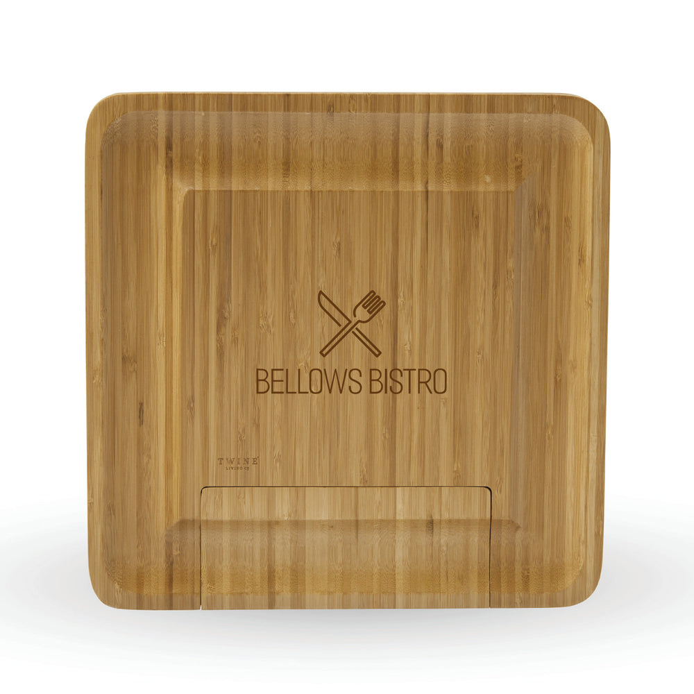 Smooth bamboo and elegant grooves make this cheese board perfect for charcuterie spreads, and the hidden compartment includes a set of knives suitable for any specialty cheeses, cured meat, or fruit.