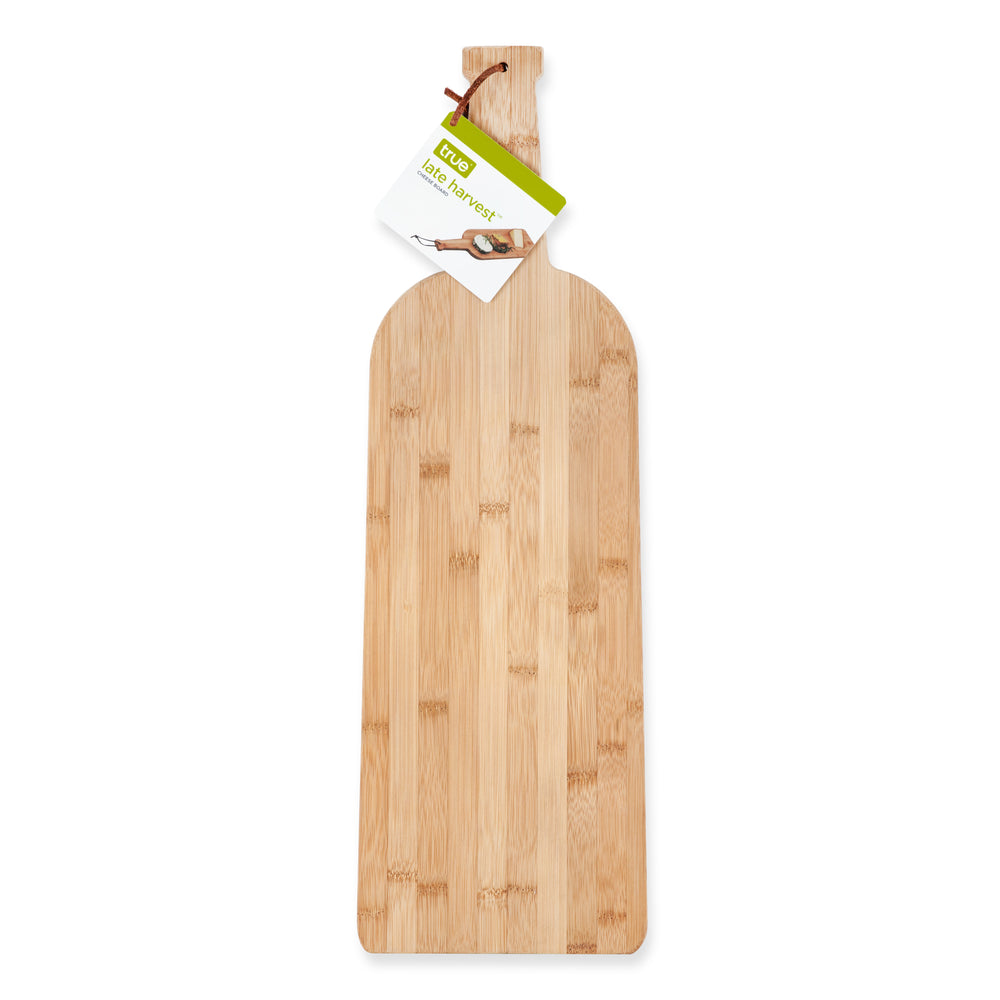 Serve up a seasonal bounty on the Late Harvest Cheese Board, made from natural bamboo with a food-safe finish. Its wine bottle shape makes the board an easy choice for an impromptu tasting and hangs up when not in use to lend a winery vibe to your kitchen.