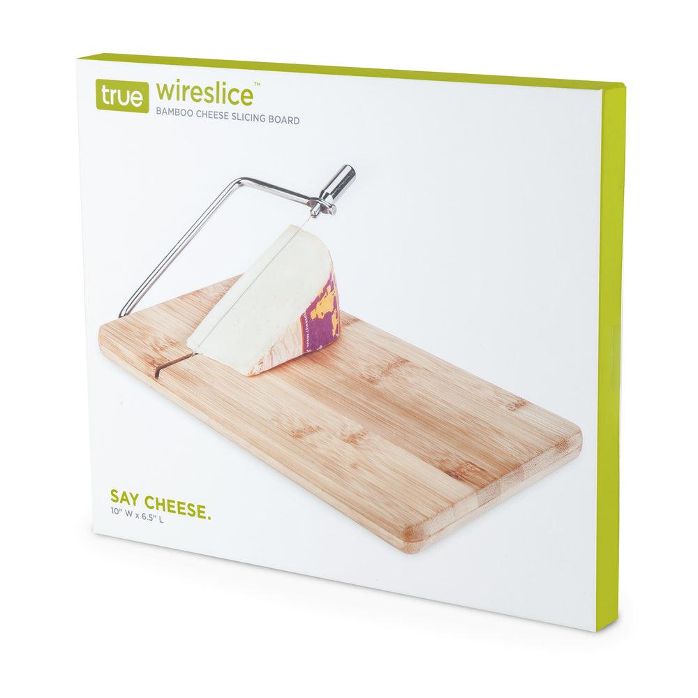 It just might be the best thing since sliced bread. Say hello to our WireSlice Bamboo Cheese Slicing Board, which integrates a fine stainless steel wire with a built-in lever arm to shave perfect pieces, thick or thin, off blocks and rounds of cheese from solid cheddar to soft camembert.