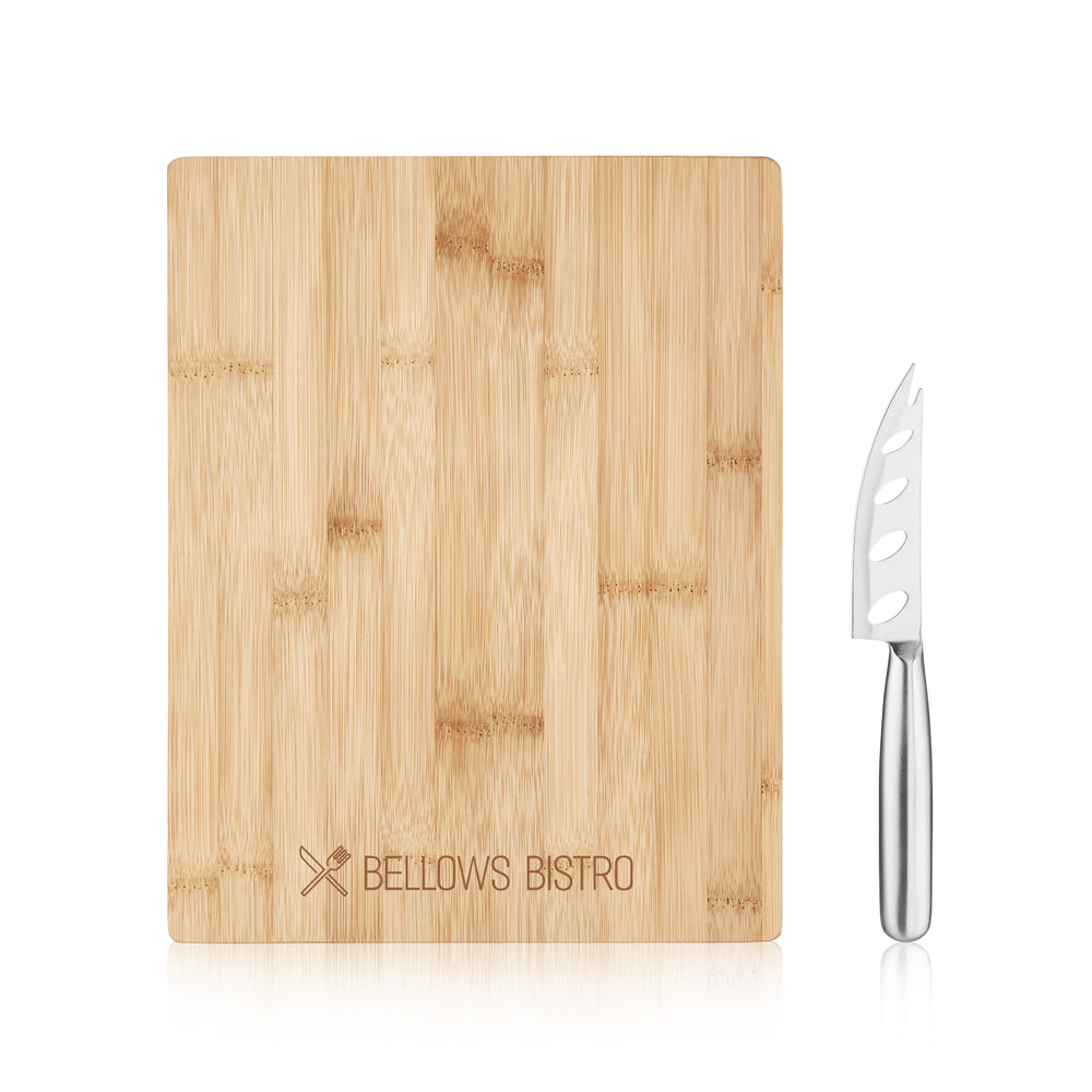 - Material: Food-safe bamboo board, Stainless steel cheese knife