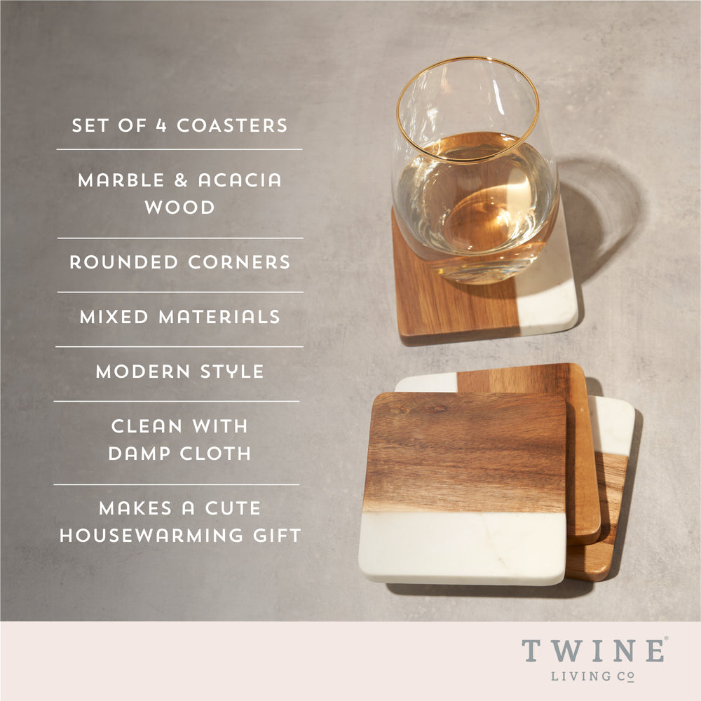 Mixed materials elevate these coasters to attractive accent pieces in their own right. The set of four is crafted from smooth marble and natural acacia wood.