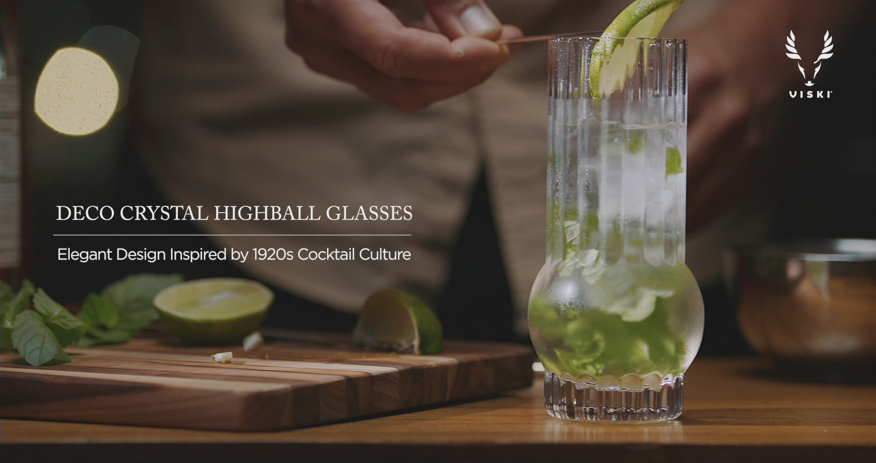 Inspired by the elegance of art deco architecture and the American cocktail culture of the 1920s, these highball glasses are perfect for a Mojito, Cuba Libre, or Bloody Mary.